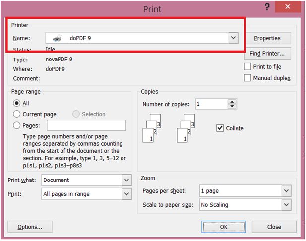 Deschideti fisierul curent de lucru (doc, xls, jpg sau orice altceva) si tipariti-l la imprimanta virtuala care s-a instalat la pasul 1.