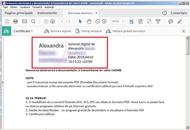 - Deschideti fisierul PDF cu programul Adobe Acrobat Reader.